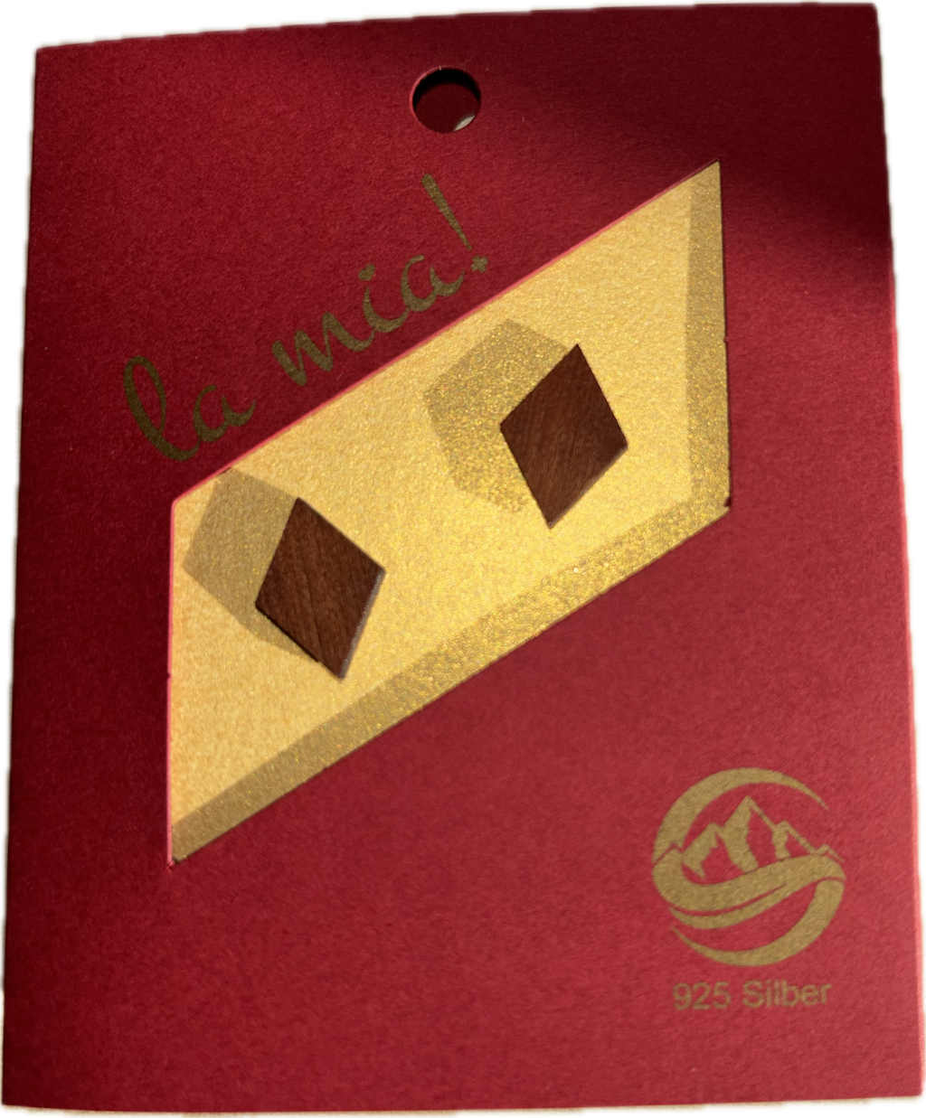Elegante Ohrstecker in charakteristischer Rautenform – inspiriert vom ikonischen Wanderzeichen der Schweizer Alpen. Gefertigt aus hochwertigem Schweizer Kirschholz, das mit rhodiniertem 925er Silber veredelt ist. Die Kombination natürlicher Holzwärme und glänzendem Edelmetall schafft ein zeitloses Design mit alpinem Charakter. Ideal für Wanderbegeisterte und Liebhaber authentischer Schweizer Handwerkskunst.