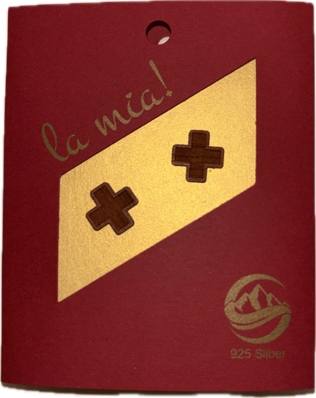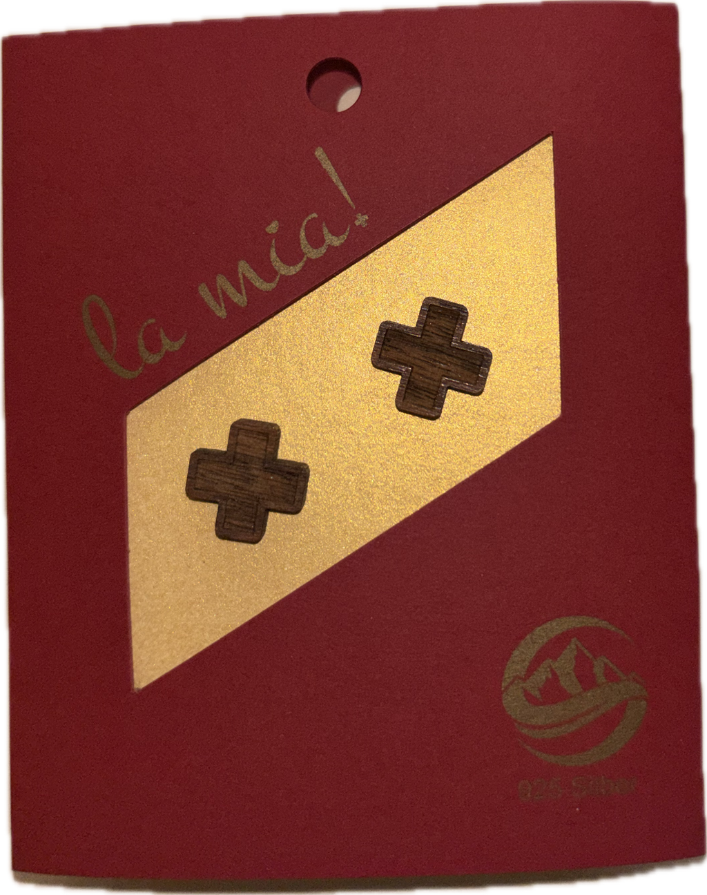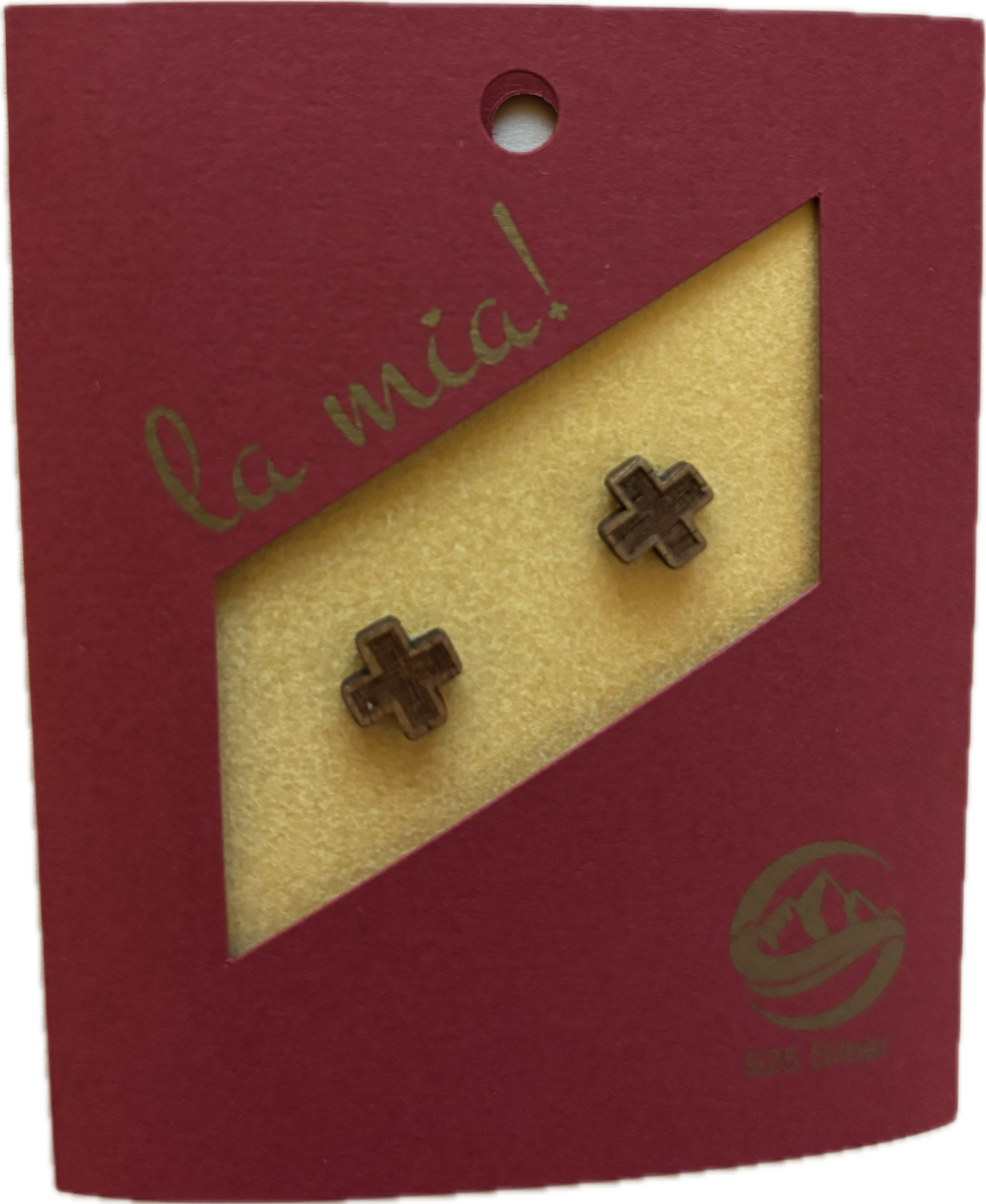 Jedes Paar Ohrstecker ist ein Unikat – die natürliche Holzmaserung macht jeden Ohrschmuck einzigartig. Das zeitlose Schweizerkreuz-Design passt sowohl zum Alltag als auch zu besonderen Anlässen.