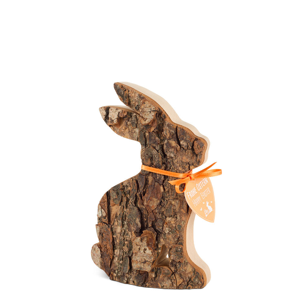 Rindenhase sitzend mit Schleife – Osterdekoration aus Holz